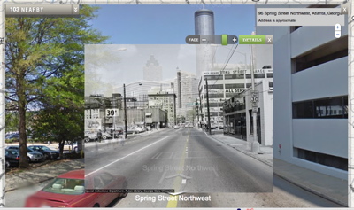 WhatWasThere imposes historical photographs onto Google Maps street view images, showing what altered or long-demolished buildings would look like if they were neatly dropped right back into their former locations. Atlanta National Bank, for example, can be re-installed on the corner of Peachtree and Alabama Streets. The creators’ goal is no less ambitious than to use Google Maps and contributed photos to “build a history of the world.”